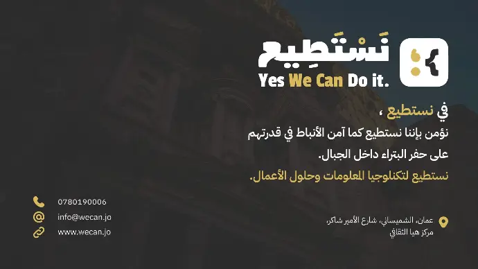 الانضمام إلى فريق عمل 'نستطيع' يعني أنك ستكون جزءًا من بيئة إبداعية وديناميكية، حيث نعمل معًا لتحويل الأفكار إلى حلول رقمية مبتكرة. نحن نؤمن بقوة العمل الجماعي ونقدم فرصًا للتطوير المهني والنمو الشخصي. معًا، نصنع الفرق ونحقق النجاح!
